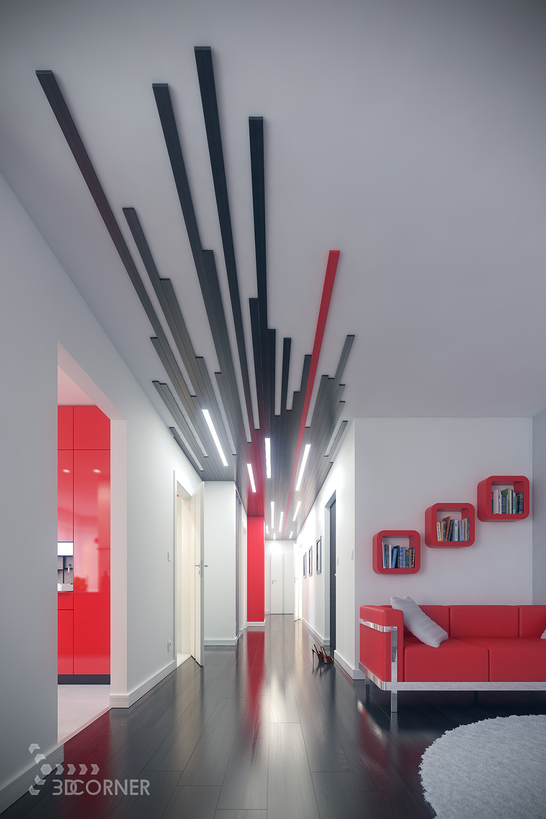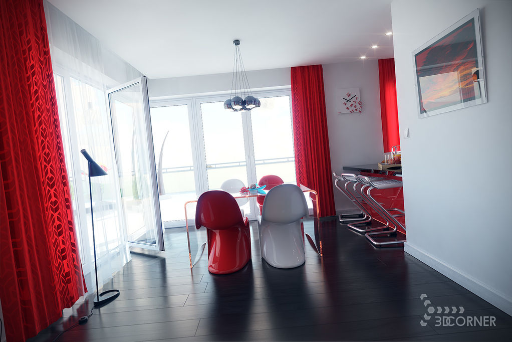 Świetne wizualizacje 3d zaprojektowanych wnętrz wykonane przez studio 3DCorner. Piękna czerwień uzupełnia odcienie szarości, biały i czarny kolor całego mieszkania. … Read more »